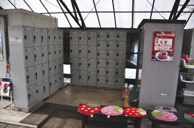 お客様の荷物を入れて頂けるように鍵付き個人ロッカーを用意いたしました。かばんやジャケットなどを入れてご使用いただけます。山武市成東観光苺組合ではお客様のかばんなどを苺ハウスに持ち込むことを禁止しておりますので是非ご利用ください。ただし、貴重品等の紛失に関しては一切責任を持ちませんので、ご自身で管理されますようにお願いいたします。