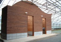 当園で行って参りましたお客様向けアンケートの結果、非常に多くの方々から清潔なトイレがほしいという要望を受け、2003年に木造トイレを新築しました。トイレの上部には、九十九里の海をイメージして鯨(クジラ)のデザインを採用しております。かなりの投資額になりましたが、お客様の満足度はそれまでの簡易式トイレとは雲泥の差が出ました。